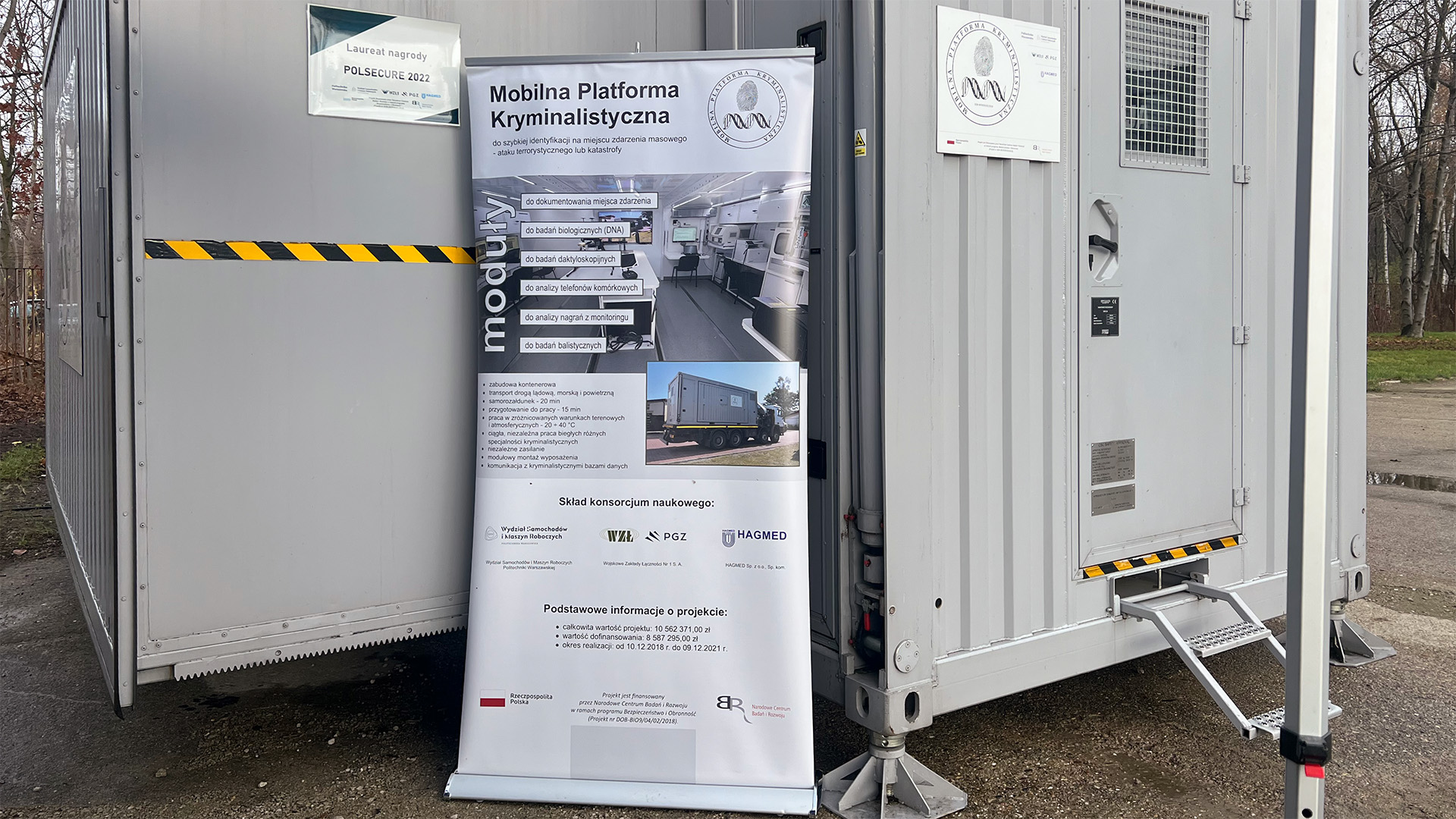 Na terenie Oddziałów Prewencji Komendy Wojewódzkiej Policji w Łodzi odbyło się uroczyste przekazanie do bieżących działań jednostki wyniku projektu pt. „Mobilna platforma kryminalistyczna do szybkiej identyfikacji na miejscu zdarzenia masowego – ataku terrorystycznego lub katastrofy”. Przedsięwzięcie zostało zrealizowane przez konsorcjum, którego liderem była Politechnika Warszawska – Wydział Samochodów i Maszyn Roboczych.